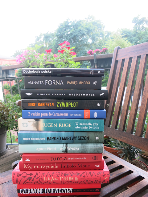 Aby mieć jakąś sensowną perspektywę, ułożyłam sobie stos 12 tytułów, które chciałabym przeczytać w sierpniu i we wrześniu. Wyszedł trzykolorowy. A że na blogach zapanowała ostatnio moda na wybieranie książek według kolorów, to wstrzeliłam się w ten trend :)
